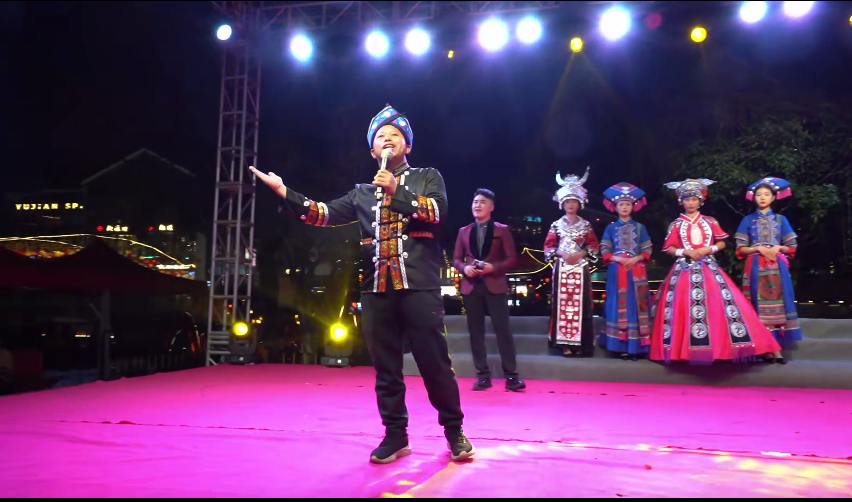 凭一句“栓Q”爆红全网,又因一首划船歌火到国外的阳朔本土网红“栓Q哥”Teacher刘,登台演唱“成名曲”《划船歌》,以及一首当地山歌《世上哪有树缠藤》。Teacher刘因为时常在网络平台上发布视频,用中英文介绍家乡阳朔的风土人情而走红。“阳朔山歌舞乐大舞台”也是希望通过网络让每个平凡人的梦想都被照亮,通过短视频被全世界看到。