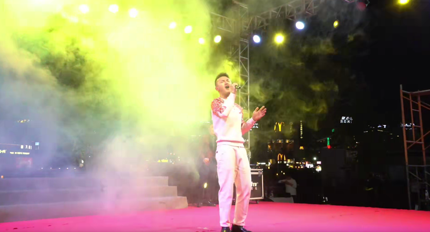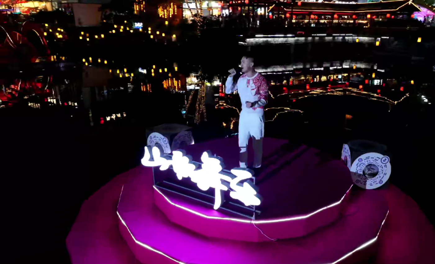 三月三,四天假,只有广西人独享! 作为广西人,歌手麦震烁怎能错过?“上你们的班,我请假回阳朔对歌去了!” 歌手麦震烁演绎《弯弯的月亮》 两名水手把麦震烁护送到漓江夜色的水上舞台,一首广州流行名曲《弯弯的月亮》,响彻阳朔西街,“这样的体验真的非常特别,这也是我第一次这样演出”,小麦兴奋地说。 不过,舞台虽美好,麻烦可不少,距离主舞台好几十米,很难听清自己在唱什么,只能靠着过硬的基本功,一丝不乱地完成了这个高难度亮相。