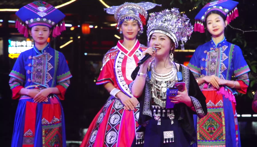 罗劲文是正宗桂林本地人,经历丰富多彩:是成功的地产商,他开发的国奥城等是桂林领先的楼盘;是优秀的体育赛事组织者,曾经策划主办了世界女子九球锦标赛等国际赛事;是专业级的音乐文化人,早年还曾在广州著名的白天鹅音像担任音乐制作人,后来又在北京从事文化行业,多年来为桂林文旅贡献良多。 这次他的身份是山歌舞乐投资人、阳朔山歌舞乐文旅产业有限公司董事长,为阳朔西街带来一个全新文化品牌。 罗劲文认为文旅健康产业大有可为,希望能够对标贵州“村超”,在游客流量得天独厚的阳朔打造一个接地气的文化活动品牌,通过全民参与的方式,内容的驱动以及公平的赛制、短视频传播技术,将“山歌舞乐大舞台”做成一个以民族风情为中心、涵盖民俗非遗文化,以才艺展示为内容的文旅品牌,为年轻人提供创业的平台,也为大众带来快乐。 4月12日下午的“三月三”民族歌舞表演,主办方邀请阳朔本土演艺团体载歌载舞,轻盈柔美的舞蹈,动听的广西民歌,极具张力的歌舞表演让现场观众大饱眼福,网络直播间首次开播便收获了众多观众的热情点赞。